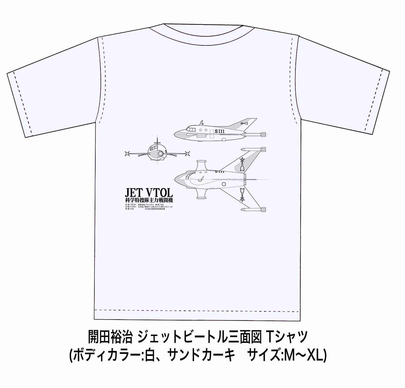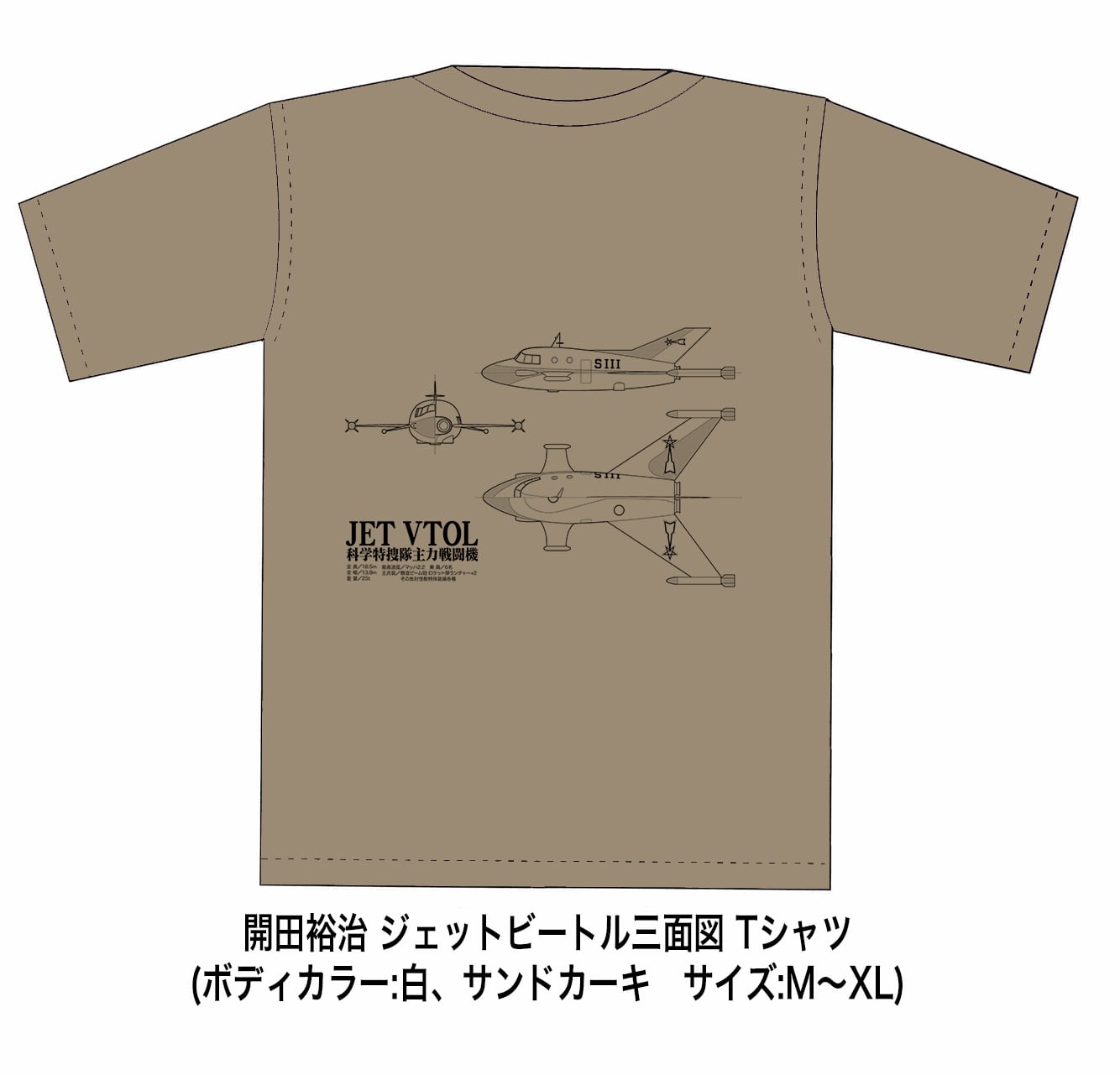 怪獣絵師 開田裕治デザインのTシャツ。胸全面にジェットビートルの三面図をデザインしてプリント。